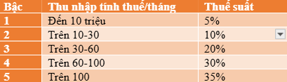 - Bảng thuế suất cá nhân theo bậc lũy tiến
